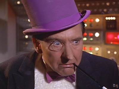 The Penguin — Played by Burgess Meredith. The Penguin is an old arch enemy of the Caped Crusaders. He baffles them with his bird and umbrella clues as to what crime he is going to commit.